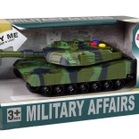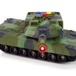 Objavte zábavný a odolný tank pre malých veliteľov. Vďaka autentickému maskovaniu, gumovým pásom a otočnej hlavni pôsobí model vierohodne a podporí kreatívne hranie. Tri farebné tlačidlá aktivujú rôzne zvuky a červené svetlo v hlavni simuluje výstrel.