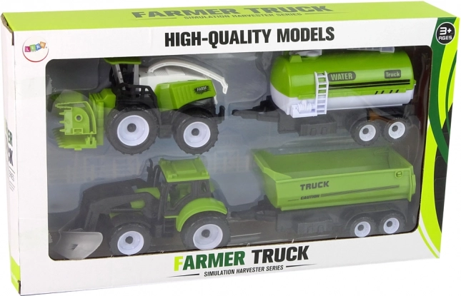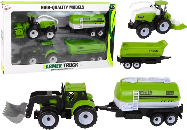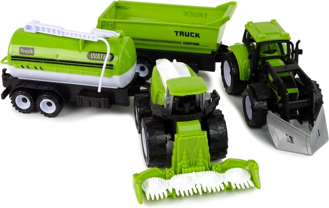 Táto komplexná súprava farmárskych strojov prináša deťom autentický zážitok z práce na poli. Traktor s predným nakladačom, kombajn a prívesy (cisterna na vodu a nákladný príves) umožňujú ľahko simulovať zavlažovanie, žatvu aj prevoz materiálu. Vďaka realistickému spracovaniu a odolnému plastu sa hodí do detskej izby, na záhradu aj do piesku.