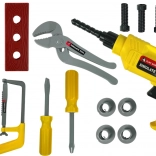 Súčasťou je simulovaná vŕtačka, kladivo, píla aj kliešte – všetko v prevedení, ktoré pripomína skutočné náradie a podnecuje napodobňovanie dospelých.