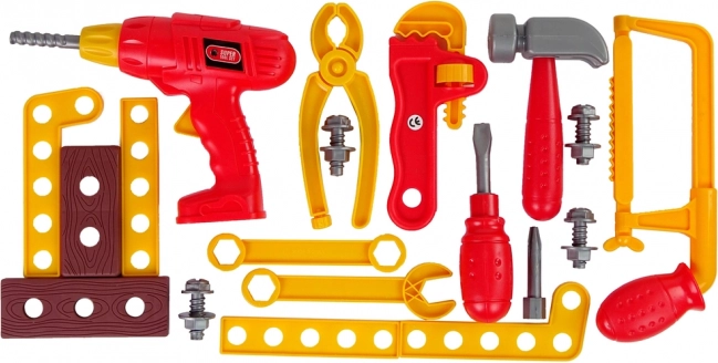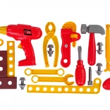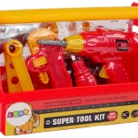Kompletná detská sada pre malých kutilov v praktickom kufríku. Obsahuje vŕtačku pre malé ruky, skrutkovač, kladivo, kliešte, francúzsky kľúč, zverák a spojovacie diely. Ľahký plastový materiál, výrazná červená farba a možnosť všetko uložiť do prenosnej skrinky podporujú rozvoj motoriky a kreatívnu hru. Vhodné od 3 rokov, s certifikátom CE.