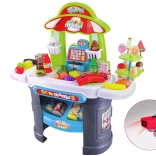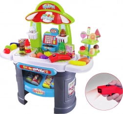 Ručný skener pri načítavaní tovaru vydáva pípanie a červené svetlo, čím dodáva hre autentickosť. Set zahŕňa pokladňu, bankovky a mince, stánok so sladkosťami, makety potravín a nápojov i množstvo kartónových a plastových obalov. Kvalitné spracovanie a materiály s certifikáciou zaisťujú bezpečnú hru pre deti od 3 rokov.