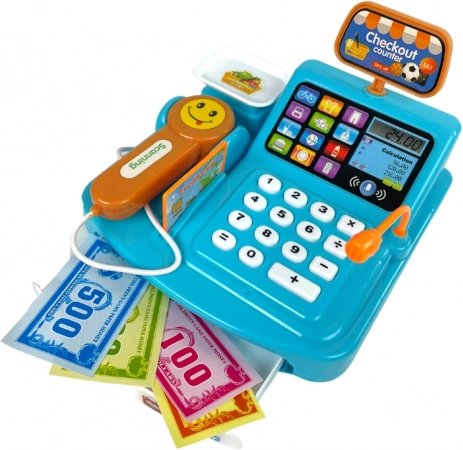 Zábavná detská pokladňa v modrom prevedení s váhou, skenerom a čítačkou kariet premení každý deň na realistickú hru na obchod. Podporuje učenie počítania, rozpoznávanie peňazí a rozvoj komunikácie. Skener vydáva realistické zvuky ako v supermarkete a sada obsahuje aj mince a krabičku sušienok pre ešte autentickejší zážitok.