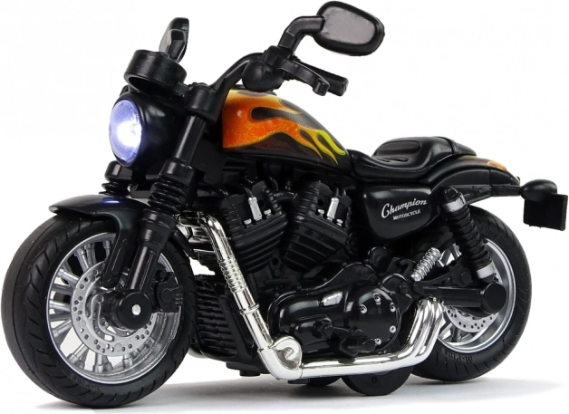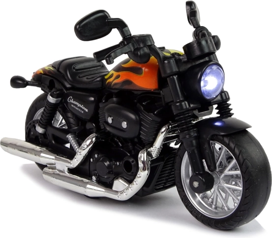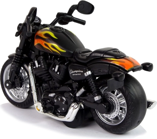 Tento motocykel je detailne prepracovaný, má gumové kolesá, ktoré zabezpečujú skvelú prilnavosť, a plastové prvky s nálepkami. Pull-back pohon umožňuje jednoduchý pohyb po stlačení dozadu a následné pustenie. Pri zatlačení na povrch sa aktivujú svetelné a zvukové efekty, čo vytvára realistický dojem jazdy.