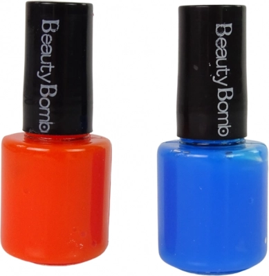 Sada obsahuje dva laky na nechty - jeden v oranžovej a druhý v modrej farbe, ktoré dodajú nechtom jasný a živý vzhľad.