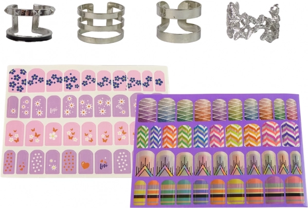 Nálepky a prstene v rôznych tvaroch a vzoroch ponúkajú nekonečné možnosti pre kreatívne zdobenie nechtov.