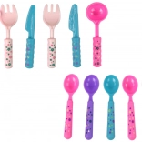 Obsahuje sadu príborov v jasných farbách, ktoré deti zaujmú.
