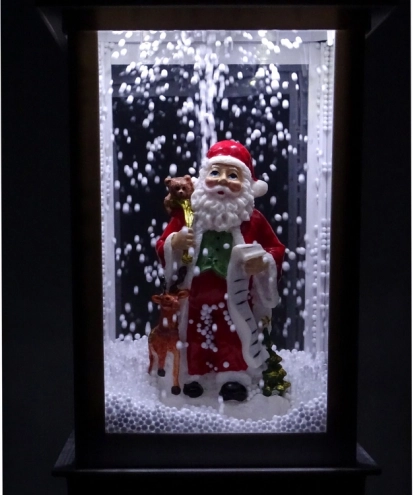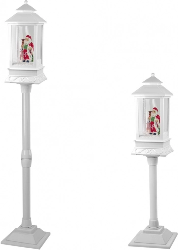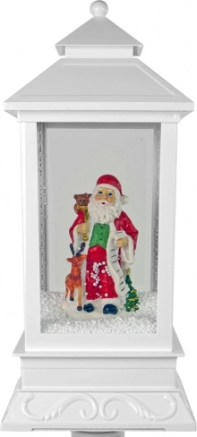 Táto elegantná biela lampa je ako stvorená na vianočnú výzdobu. Vo vnútri stojí veselý MIKULÁŠ s vrecom darčekov a dlhým zoznamom prianí. Integrované čerpadlo cirkuluje sneh od základne smerom nahor, takže vo vnútri neustále „sneží“, čo vytvára okúzľujúcu zimnú podívanú. Pevné plastové prevedenie zaisťuje nízku hmotnosť a odolnosť – dekoráciu tak môžete používať každé Vianoce znova.