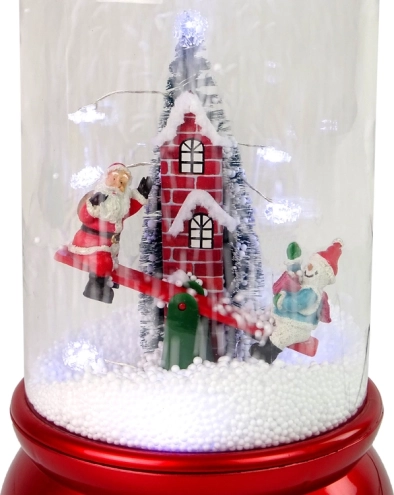 Táto vianočná dekorácia kombinuje krásu tradičnej snehovej gule s modernými funkciami. Integrované čerpadlo rozvíri umelý sneh, ktorý padá zhora a vytvára realistický efekt zimnej fujavice. Vo vnútri nájdete veselého Santu so snehuliakom na hojdačke a vysoký tehlový komín s vianočným stromčekom – scéna, ktorá poteší deti aj dospelých.