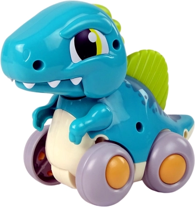 Roztomilý dinosaurus na kolieskach poteší každé malé dieťa a podporí jeho prvé krôčiky. Stačí ho pritlačiť k podlahe, pustiť a sledovať, ako sa rozbehne vpred. Rozvíja motoriku, vnímanie farieb a tvarov, počas jazdy otvára a zatvára tlamičku a plynulo jazdí po rovnom povrchu. Vyrobený z bezpečných, kvalitných materiálov, s certifikáciou CE (EN 71).