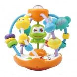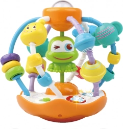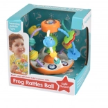 Táto farebná interaktívna guľa je ideálnou pomôckou na všestranný rozvoj bábätiek. Vďaka rôznym tvarom, farbám, zvukom a svetlu stimuluje zrak, sluch aj hmat a prirodzene rozvíja logické myslenie. Uprostred sa skrýva veselá žabka, ktorá sa pri zatrasení pohupuje hore a dolu, a na vrchole nájdete otáčavú guličku na ďalšie objavovanie.