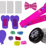 So sadou pre stylizáciu vlasov môžu deti čarovať nové a úžasné účesy, čo rozvíja ich manuálne zručnosti a kreativitu. Súčasťou balenia sú tri farebné náplne na vytváranie pramienkov. Náplň stačí vložiť do žehličky, pretiahnuť po pramienku vlasov a farebný efekt je na svete! Všetko je úplne bezpečné pre deti, kriedy sa ľahko zmývajú vodou a mydlom a nezanechávajú trvalú farbu na vlasoch.