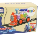Pohyblivé ozubené kolesá spolu s farebnými diódami tvoria vizuálne atraktívnu podívanú, ktorá pritiahne pozornosť každého dieťaťa. Lokomotíva má trecí pohon; stačí ju natiahnuť dozadu a pustiť a pôjde sama vpred.