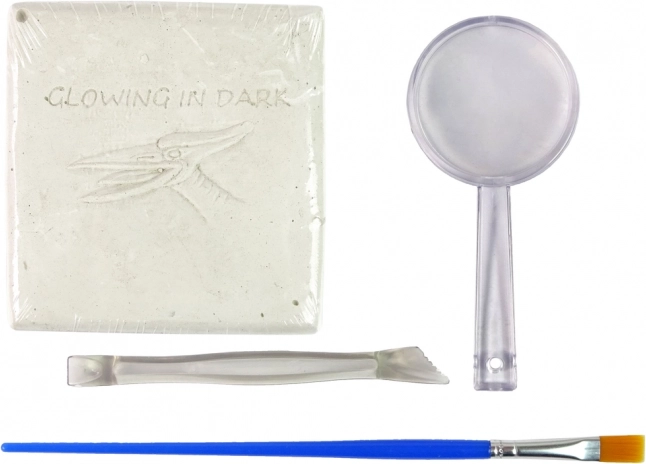 Pomocou priložených nástrojov a jednoduchých inštrukcií vaše dieťa objaví fosílie dinosauřích kostí, ktoré svietia v tme. Po očistení a spojení jednotlivých častí vznikne dinosauří kostra Pteranodona.