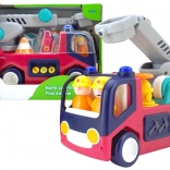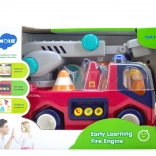 Interaktívna hračka hasičského auta je ideálna pre rozvoj jemnej motoriky vášho dieťaťa. Obsahuje pohyblivé časti a rôzne funkcie, ktoré rozvíjajú manuálnu zručnosť. V prednej kabíne sedia dve figúrky hasičov a na návesu sú prvky pre malú záchrannú akciu.