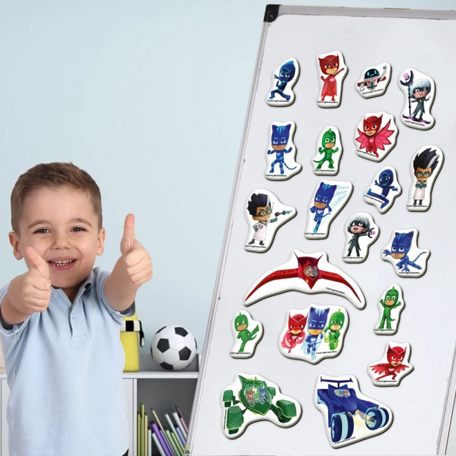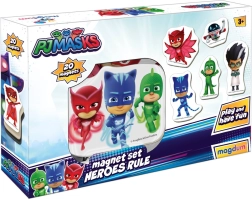 Objavte čaro hrdinov z PJ MASKS s pestrou sadou magnetiek, ktorá prináša hodiny tvorivej zábavy. Magnetky sú odolné, majú príjemné tvary pre detské ruky a vďaka bezpečným zaobleným okrajom sú vhodné pre deti od 3 rokov. Deti môžu ľubovoľne skladať scény a príbehy na chladničke, magnetickej tabuli alebo inom kovovom povrchu.
