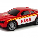 Športové hasičské auto s výraznými potlačami FIRE a gumovými pneumatikami sviští po rovných podlahách bleskovou rýchlosťou.