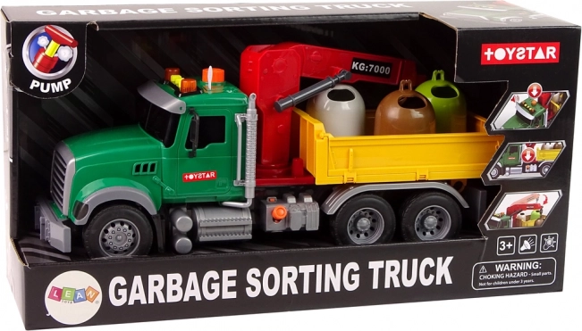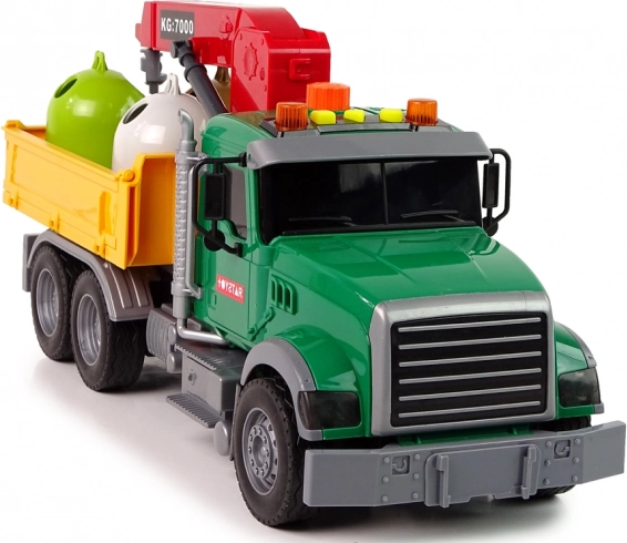 Realistické svetelné a zvukové funkcie (majáky, klaksón, cúvanie) dodajú hre pravú atmosféru pracovných strojov. Hračka má edukačný prínos – deti si osvoja zásady ekológie a triedenia odpadu, rozvíjajú jemnú motoriku aj fantáziu.