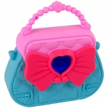 Štýlová ružovo-tyrkysová kabelka s výraznou mašľou a ozdobnými detailmi je ideálna na ukladanie všetkých drobných pokladov.