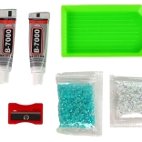 Postup je jednoduchý: naneste tenkú vrstvu lepidla na povrch soba a pomocou voskového štičku ukladajte kryštáliky jeden po druhom. Behom chvíľky získate lesklý 3D prívesok, ktorý upúta pozornosť.