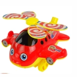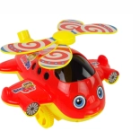 Helikoptéra má otočné rotory vytvárajúce zvuky cinkania, a pri pohybe sa z prednej časti vysúvajú hravé prvky. Pripojená tyč umožňuje ľahké tlačenie.