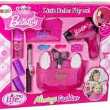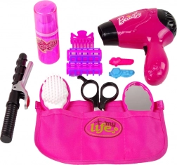 Sada sa skladá z dielikov prispôsobených malým detským rúčkam. Obsahuje fén a kulmu na vlasy ako hračku, realisticky vyzerajúce plastové nožnice, ružový hrebeň a zrkadielko a tiež kadernícku skrinku, v ktorej možno uvedené príslušenstvo prenášať. Súčasťou sady sú aj dve ozdobné sponky, ktorými možno ozdobiť vytvorený účes. Všetky diely sú vyrobené s dôrazom na detail, takže sa vaša malá kaderníčka bude môcť naplno oddať svojej vášni.