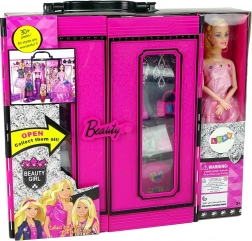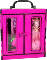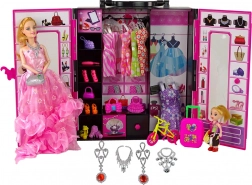 Vstúpte do sveta módy s týmto šatníkom, ktorý je určený pre dievčatá, ktoré milujú hrať sa s bábikami, prezliekať ich a štýlovať. Skriňa je navrhnutá v svetloružovej farbe s dvojitými dverami so sklenenými panelmi, vďaka ktorým môžete nahliadnuť dovnútra.