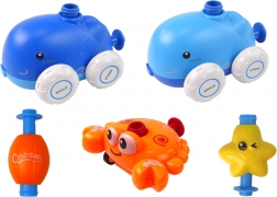 Najprv si vyberte balónik podľa farby a nasaďte ho na auto. Potom pripojte auto k odpaľovacej súprave v tvare delfína a pomocou páky nafúknite balónik. Keď je balónik nafúknutý, stlačte tlačidlo GO na odpaľovacej súprave a auto sa vystrelí dopredu. Sledujte, akou rýchlosťou prechádza miestnosťou. Na výber sú autá v tvare morských živočíchov, ako je delfín alebo krab.