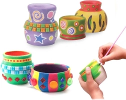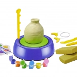 Farby, ktoré sú súčasťou sady, vám umožnia krásne vymaľovať vytvorené hrnce, škála farieb poskytne možnosť vytvoriť farebné diela podľa vlastnej fantázie. Hrnčiarsky kruh je napájaný batériami. Hračka má dve rýchlosti otáčania. Vlastnými rukami si môžete vymodelovať vlastný džbán, tanier či hrnček. Vlastnoručne vytvorená nádoba môže byť krásnym darčekom pre blízkych; so špeciálnym kruhom môžete vytvárať originálne predmety.