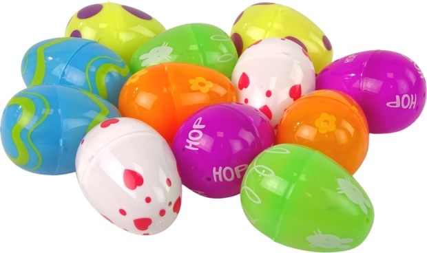 Vajíčka sú ľahké, vyrobené z plastu a úplne bezpečné pre deti. Vhodné ako inšpirácia pre hru, keď deti hľadajú vajíčka s rôznymi prekvapeniami vo vnútri.