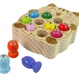 Táto klasická a interaktívna hra je navrhnutá tak, aby poskytla množstvo zábavy a zároveň pomohla deťom rozvíjať dôležité zručnosti, ako je koordinácia rúk a očí. Drevená základňa v tvare mačky obsahuje 10 farebných rybiek, ktoré hráči chytajú na dve prúty s magnetickými koncami. Hra podporuje zdravú súťaživosť.