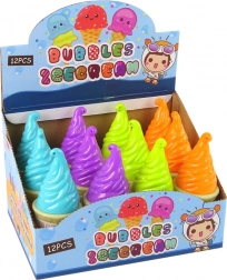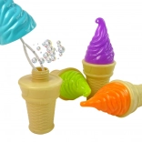 Táto hračka sa bude hodiť pri zvláštnych udalostiach alebo pri spoločnom hraní na záhrade. Nádoba má tvar zmrzliny. Tekutina vo vnútri je bezfarebná, stačí vytiahnuť tyčinku, fúknuť alebo ňou jemne prejsť a pred našimi očami sa objavia farebné bubliny.