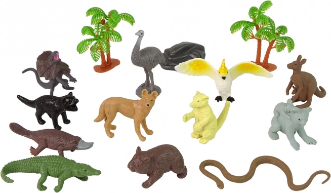 Súčasťou sady sú klokan, koala, krokodíl, emu, papagáj, had, vtákopysk, wombat, tasmánsky diabol, jašter, púštna líška, 2 stromčeky a skala – všetko na tvorbu vlastného austrálskeho sveta.