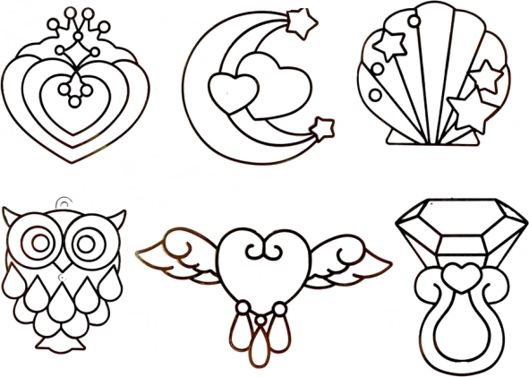 Sada obsahuje 6 priesvitných záveskov s rôznymi tvarmi – skvelé na výrobu príveskov, ozdôb do okna aj kľúčeniek.