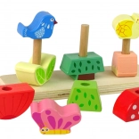Táto drevená skladačka sa skladá z pevnej základne s tromi kolíkmi, na ktoré deti nasadzujú drevené dieliky v ľubovoľnom poradí tak, aby k sebe ladili. Diely znázorňujú rastliny, motýle a vtáky – úlohou je správne ich priradiť k ich prirodzenému prostrediu, napríklad motýľa ku kvetu či vtáka k stromu. Skladačka tak rozvíja predstavivosť aj poznatky o prírode.