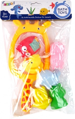 Táto zábavná a farebná sada je ideálna pre kúpanie nielen vo vani, ale aj v záhradnom bazéniku. Je dokonalým riešením pre rodičov, ktorých dieťa sa bojí vody a nemá rado kúpanie. Vďaka pestrofarebným hračkám v tvare zvieratiek si deti na vodu rýchlo zvyknú. Hračky majú malé otvory, z ktorých po stlačení strieka voda, čo deti určite pobaví. Môžete vymyslieť hru, pri ktorej sa snažíte chytiť všetky zvieratká do siete, pričom čľapkanie vody robí lov ešte napínavejším.