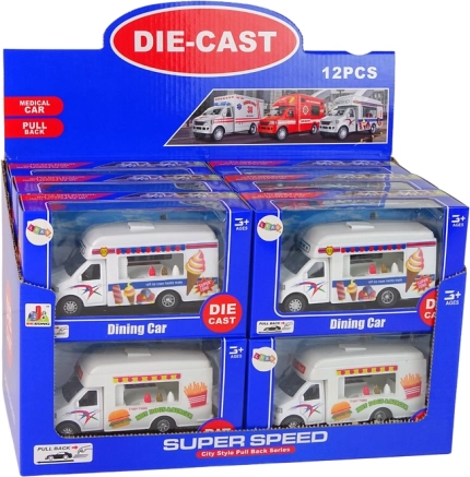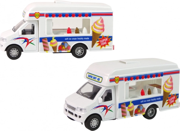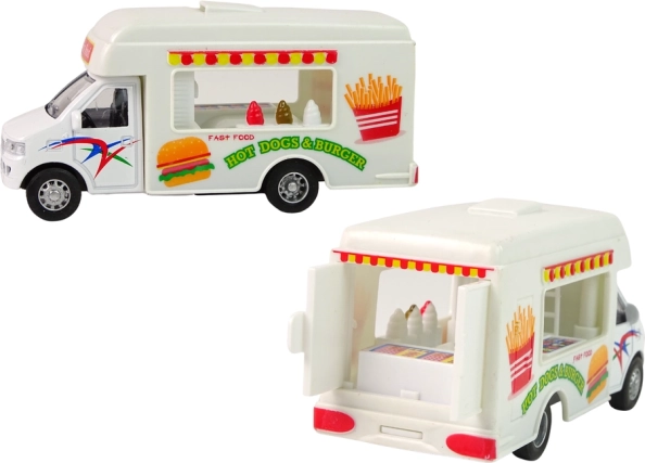 V sade nájdete dva modely karavanov. Jeden funguje ako zmrzlináreň, druhý ako rýchle občerstvenie. Staňte sa vodičom, ktorý poteší každé dieťa lahodným jedlom. Karavany sú vyrobené v bielej farbe, doplnené charakteristickými nálepkami pre každý model.