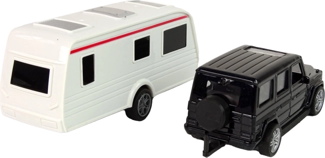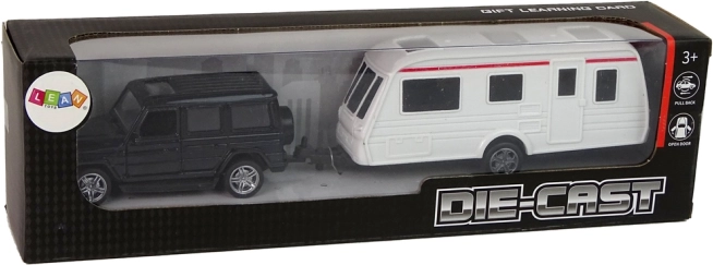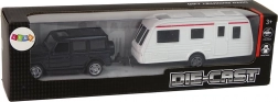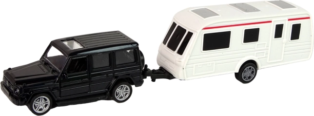 Hračku tvorí model auta, navrhnutého s dôrazom na pohodlie, a obytný príves. Autíčko je vybavené zadným pohonom - stačí ho zatiahnuť dozadu a sledovať, ako ide vpred. Dvere SUV sú otváracie.