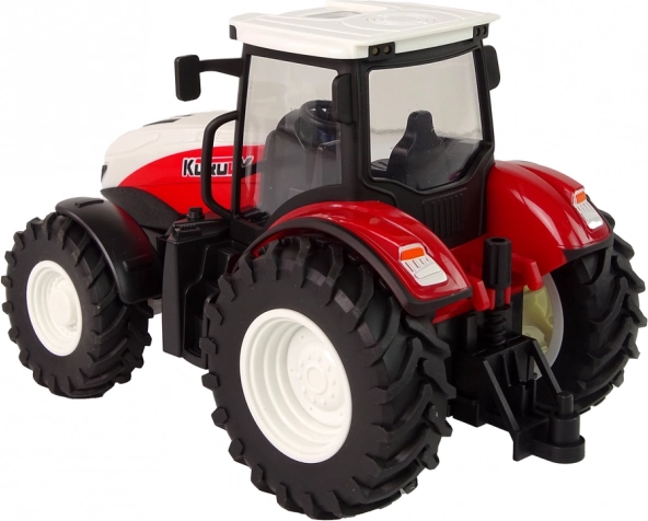 Traktor v mierke 1:24 zabezpečuje realistické proporcie. Jeho odolná konštrukcia s kovovou karosériou zaručuje dlhú životnosť a veľké gumové pneumatiky ponúkajú vynikajúcu priľnavosť na rôznych povrchoch. Červená farba s bielou strechou pritahuje pozornosť.