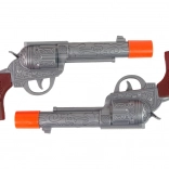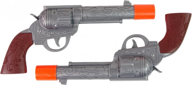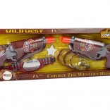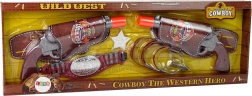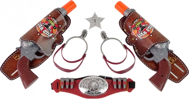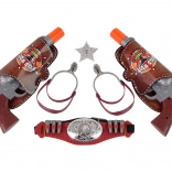 Táto kompletná kovbojská výbava premení každé dieťa na odvážneho ochrancu poriadku. Po stlačení spúšte revolver vydá realistický zvuk výstrelu (napájanie AG13), zatiaľ čo opasok s púzdrami udrží pištole vždy po ruke. Bezpečné oranžové špičky a kvalitný plast zaisťujú bezstarostnú hru doma aj vonku.