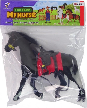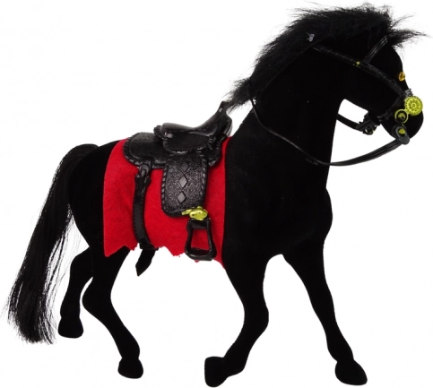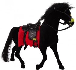 Roztomilá zamatová figúrka čierneho koňa s čiernym sedlom a červenou podsedlovou dečkou poteší malých milovníkov statkov a koní. Je vyrobená z kvalitných a príjemných materiálov, má realistické detaily a veľkosť ideálnu pre deti od 3 rokov.