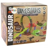 Táto veľká závodná dráha s dinosaurami je skvelým darčekom pre malých milovníkov prehistorie. Deti si postavia vlastný park dinosaurov s mostmi, tunelmi a výraznou špirálou, po ktorej sa preháňa dinosaurus na kolieskach. Po zapnutí spínača sa figúrka rozbehne a vďaka efektom vydá autentický rev dinosaura a rozžiari sa svetlom.