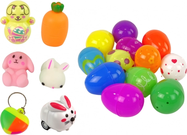 - 12 plastových vajíčok, 6 mini fidget hračiek, kabelka zajačik