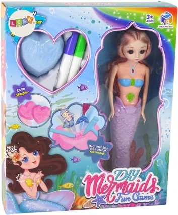 Objavte kreatívnu zábavu s DIY sadou s morskou vílou! Dieťa môže zdobiť chvost špeciálnymi fixkami, češať dlhé vlasy víly a vydolovať prekvapenie z dvoch srdiečkových kamienkov pomocou priloženého dláta. Po ponorení do vody do 3 hodín možno farby znovu zmyť a maľovať opakovane.