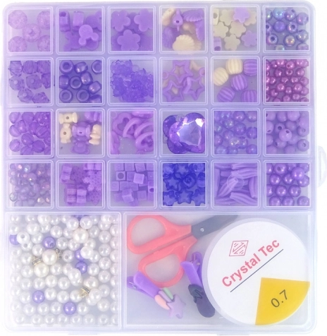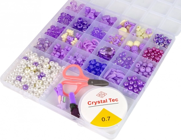 S touto úžasnou sadou korálikov môžete tvoriť jedinečné náhrdelníky, náramky a prstene vo fialových odtieňoch. Skvelá zábava a rozvoj: tvorivý proces rozvíja motoriku, koncentráciu a trpezlivosť. Vďaka prehľadnému organizéru budete mať koráliky vždy na svojom mieste a ľahko dostupné.