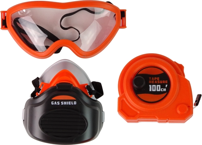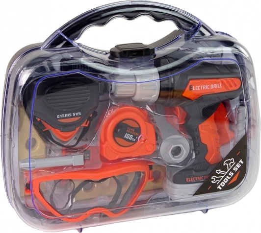 Celá sada náradia je uložená v praktickom kufríku. Obsahuje plastové nástroje, vrátane vŕtačky na batérie, ktorá sa po stlačení tlačidla točí a vydáva realistické zvuky. Pre bezpečnosť pri hre sú súčasťou súpravy ochranné okuliare a maska. Nájdete tu tiež malý meter a pílku pre precíznu prácu. Všetky súčasti sú navrhnuté tak, aby pomáhali deťom učiť sa a precvičovať manuálne zručnosti.