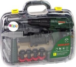 Detská sada náradia v priehľadnom kufríku ponúka deťom možnosť rozvíjať svoje zručnosti a predstavivosť pri napodobňovaní skutočného majstra. Ideálne pre deti od 3 rokov.
