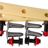 Medzi nástroje patria kladivo, píly, skrutkovač a ďalšie, čo umožňuje deťom poznávať a učiť sa názvy a použitie náradia. Všetko je uložené v praktickom kufríku, ktorý je ľahko prenosný.