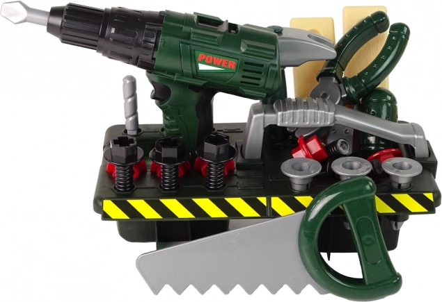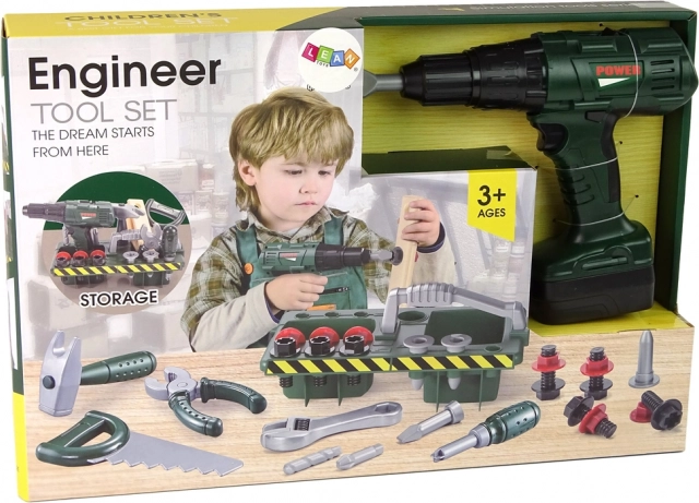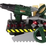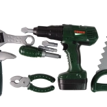 Každý nástroj je zhotovený z plastu, takže je bezpečný pre deti. Vŕtačka pri stlačení tlačidla nielenže točí vrtákom, ale tiež vydáva realistický zvuk.