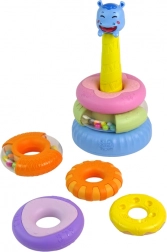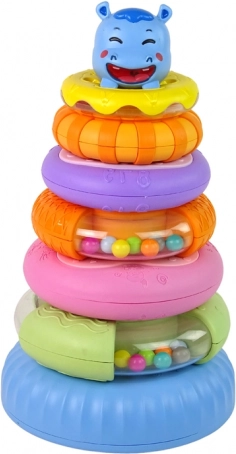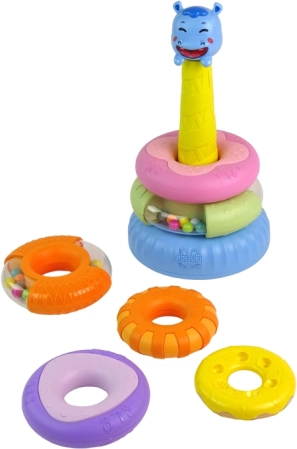 Vzdelávacia pyramída sa skladá zo šiestich farebných krúžkov, ktoré je možné skladať jeden na druhý v rôznom poradí a vytvárať tak pyramídu. Na vrchole pyramídy je roztomilý, usmiaty hrošík. Každý krúžok má inú veľkosť a farbu, čo pomáha deťom učiť sa rozlišovať farby, veľkosť a tvary a zároveň cvičiť koordináciu. Hra takto rozvíja aj kognitívne schopnosti a logické myslenie, čo je kľúčové pre správny vývoj vášho dieťaťa!