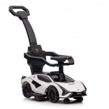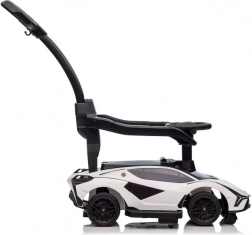 Toto odrážadlo s push madlom kombinuje športový vzhľad LAMBORGHINI a premyslené bezpečnostné prvky. Vďaka vodiaciej tyči môžu rodičia pohodlne riadiť smer jazdy, zatiaľ čo ochranný oblúk a bočné podnožky zaistia stabilitu a pohodlie malého vodiča.